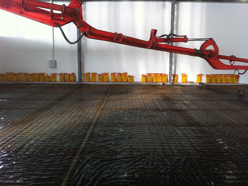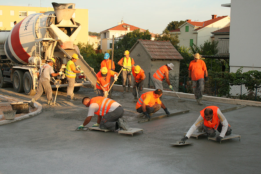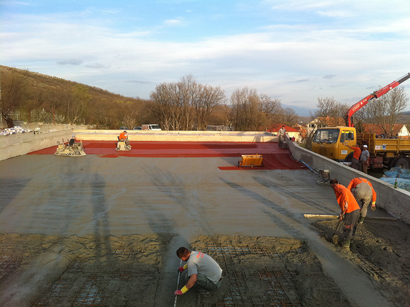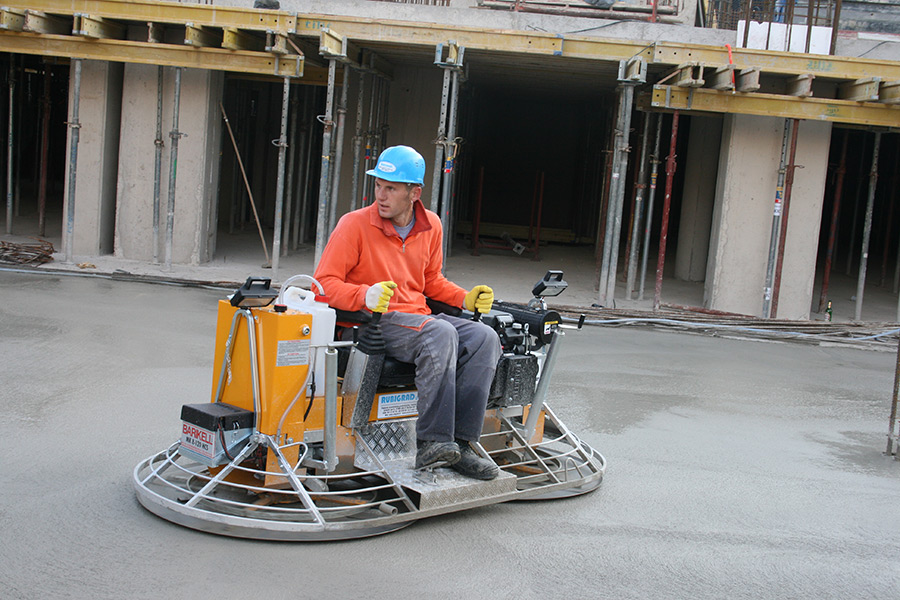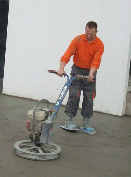 Na svježu betonsku podlogu izvodi se posip kvarcne mješavine, te se površina strojno zaglađuje rotacionim gladilicama (helihopterima).